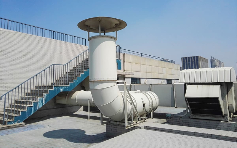 產品由低噪聲前傾多翼離心風機、電機、軸承、傳動件、消聲型箱體等組成。根據安裝位置的不同,提供12種不同的角度的進出風口位置,以滿足用戶不同的安裝需要